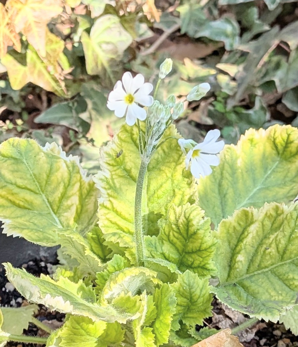 患者さんにいただいたサクラソウが咲きました。白でした!